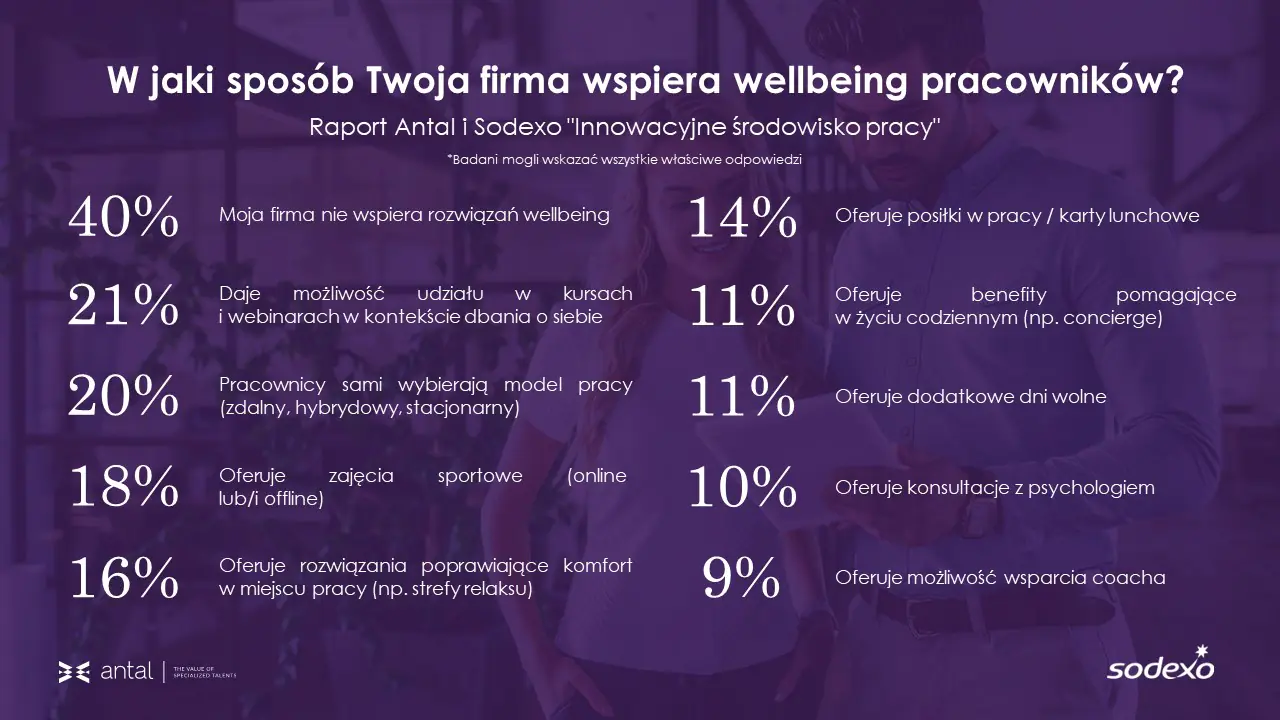 Badanie Antal oraz Sodexo “Innowacyjne środowisko pracy” zostało przeprowadzone metodą CAWI na próbie 1 016 specjalistów i menedżerów w terminie 8-18 września 2022 roku. Patronami raportu są Pracodawcy RP oraz SPCC.